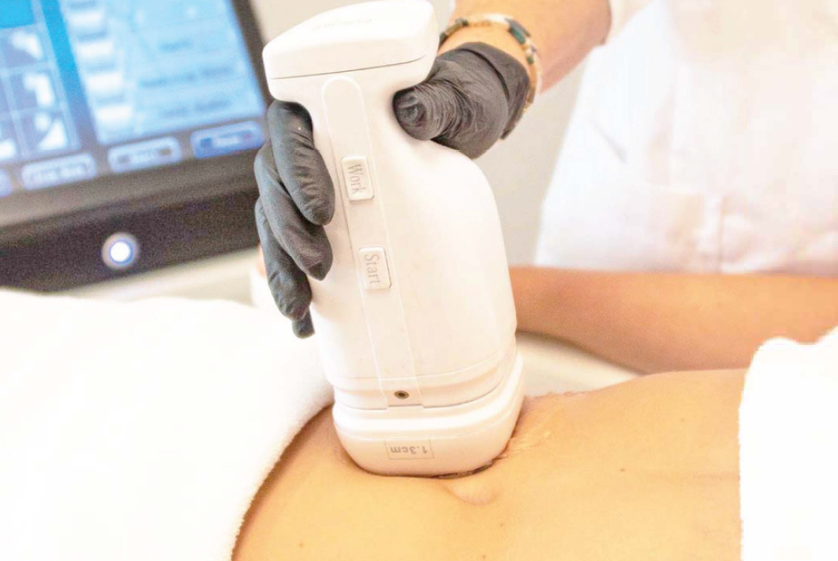 HIFU body (High Intensity Focused Ultrasound) works on the deep layers of the tissue, firming the skin and reducing localized fat without surgery. Ideal for abdomen, arms, buttocks or thighs.